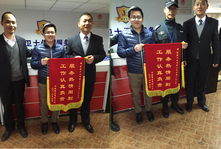 2016年2月,亿城聚龙有限公司叶经理亲自把锦旗送到我司。在此感谢公司保安队的辛勤付出,祝亿城聚龙有限公司事业蒸蒸日上,我们会继续提供更优质的服务!